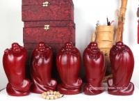 红花梨五福临门雕像一套五尊